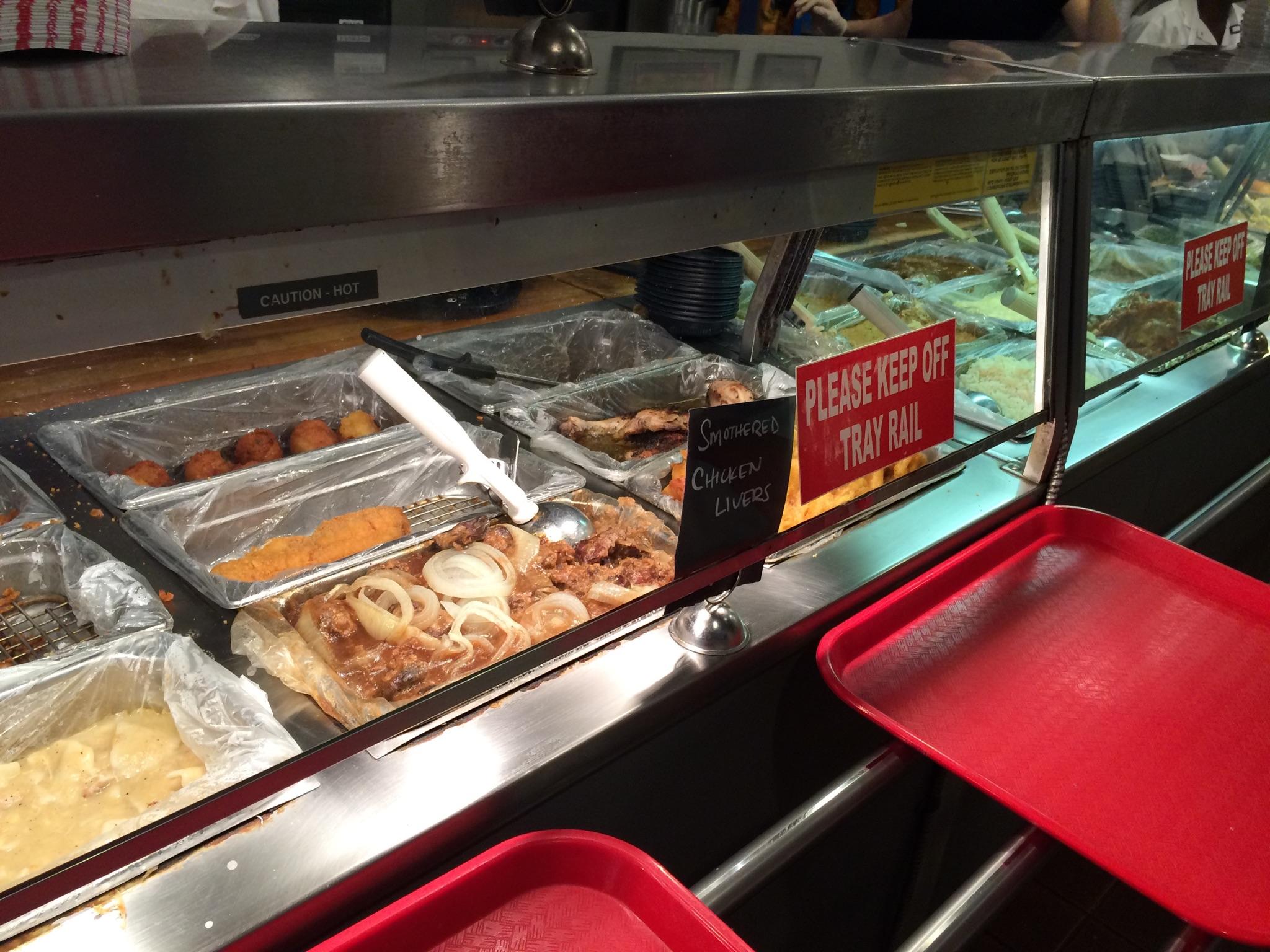 The special was smothered chicken livers~ a Southern favorite! I’m not sure what it is about cafeteria style restaurants, but I love how they bring out the little girl in me -I just get so excited about all the choices right there within arms reach! You get to see the food before you choose…